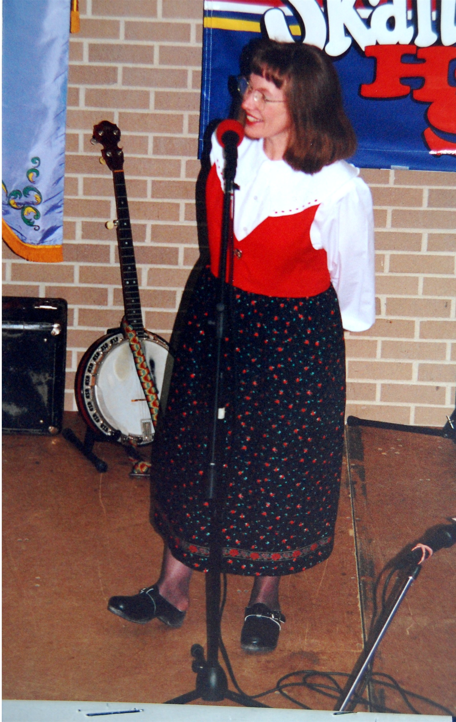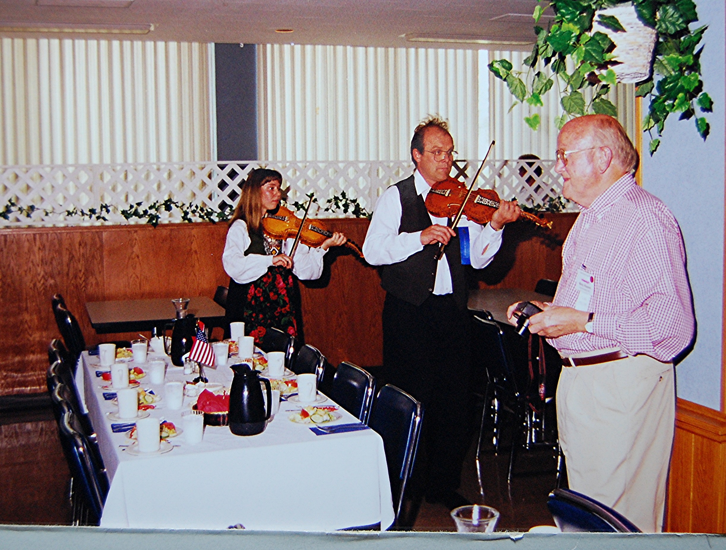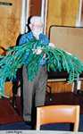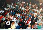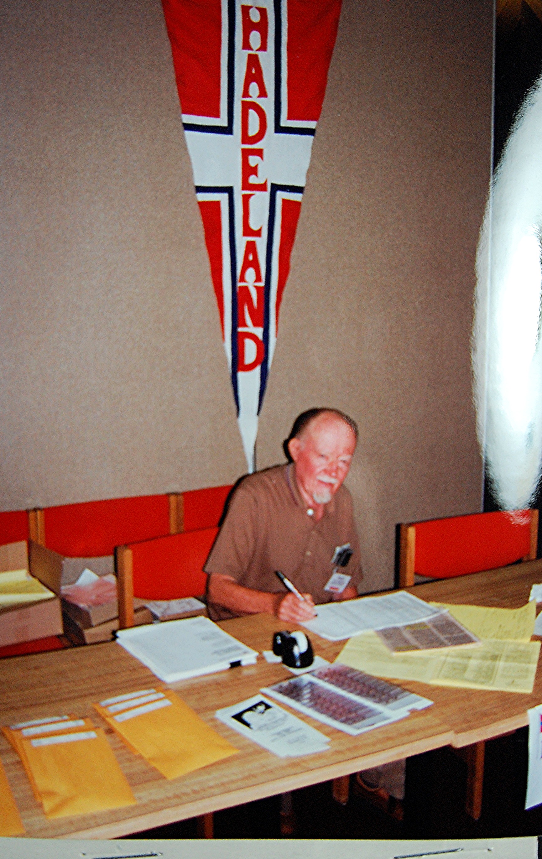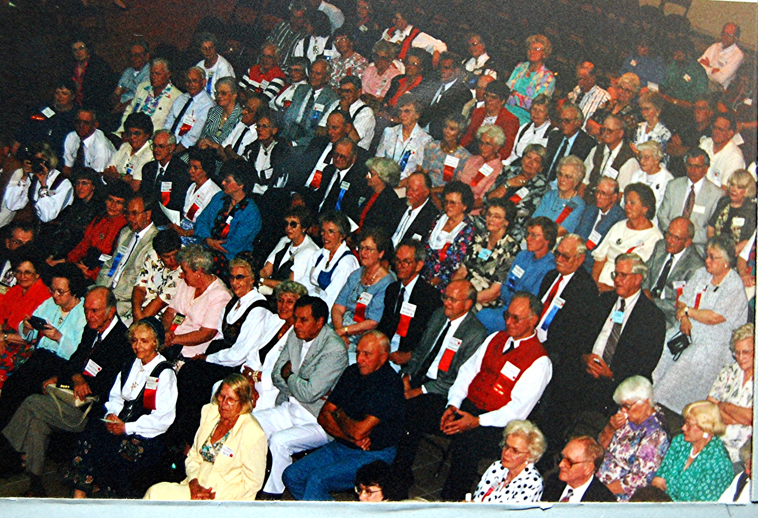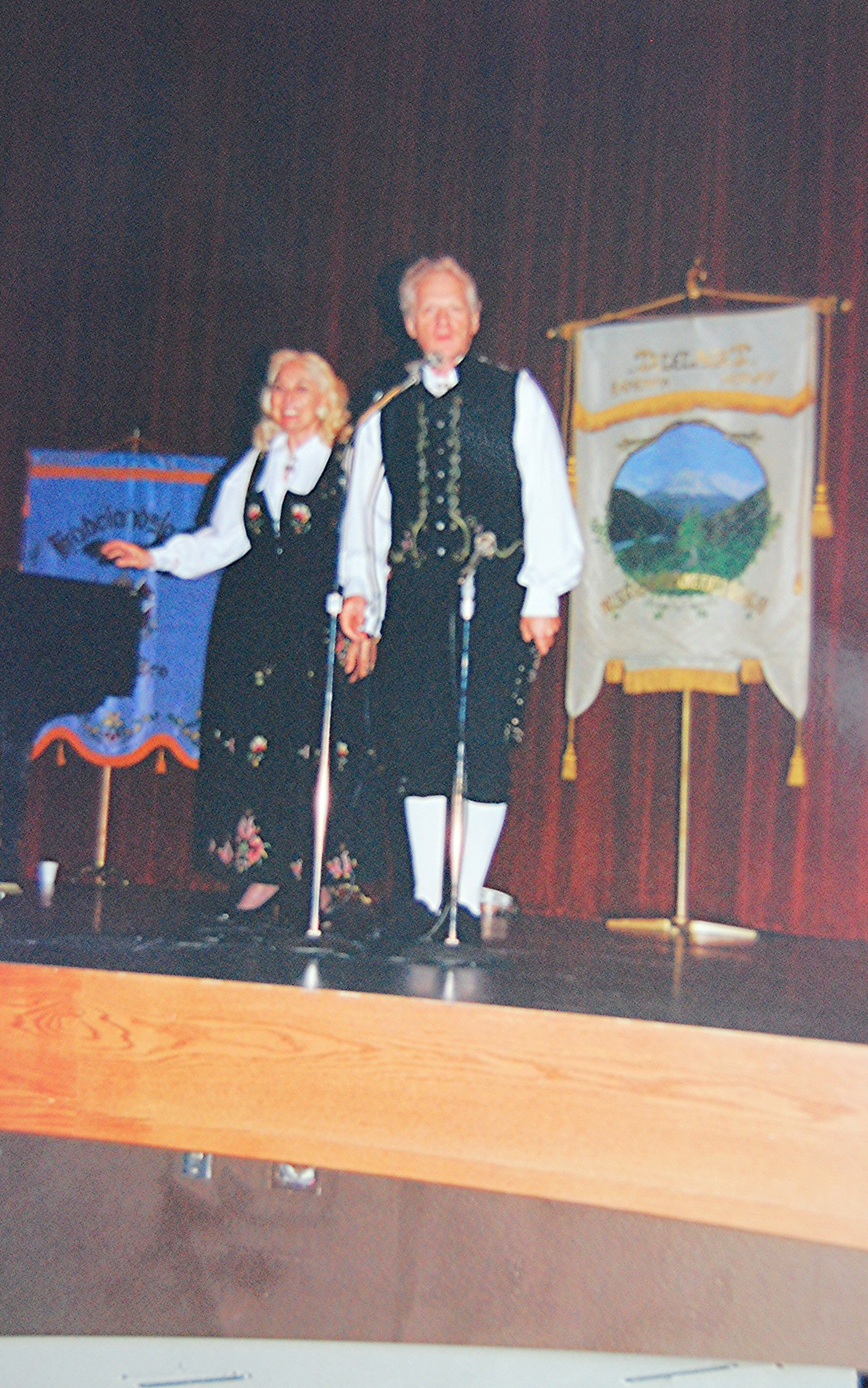 from Drammen, Buskerud, Norway.Many choices of seminar workshops were available during the day on Friday and that evening there was a parade of Bygdelags. The Hadeland Lag was represented by Paul Grinager, who carried the Hadeland banner, by our president, Bob Rosendahl, and Carol Sorum, wearing her newly-sewn Hadeland bunad. Saturday morning there were more workshops available and in the afternoon individual lags held their meetings. The Hadeland meeting followed a brief joint meeting with Landingslaget about the 2000 trip to Norway. The Bygdelag Centennial Banquet was held in the evening, and featured Christian Skjervold as Master of ceremonies; The Lost Norwegians from Northfield MN; the Luren Singing Society directed by Dr. David Judisch from Decorah; and the Foot-Notes, also from Decorah. Marilyn Sorensen and Chris Skjervold, Bygdelag Centennial Co-Chairs, closed the evening by saying adjø. From the August 1999 Brua |