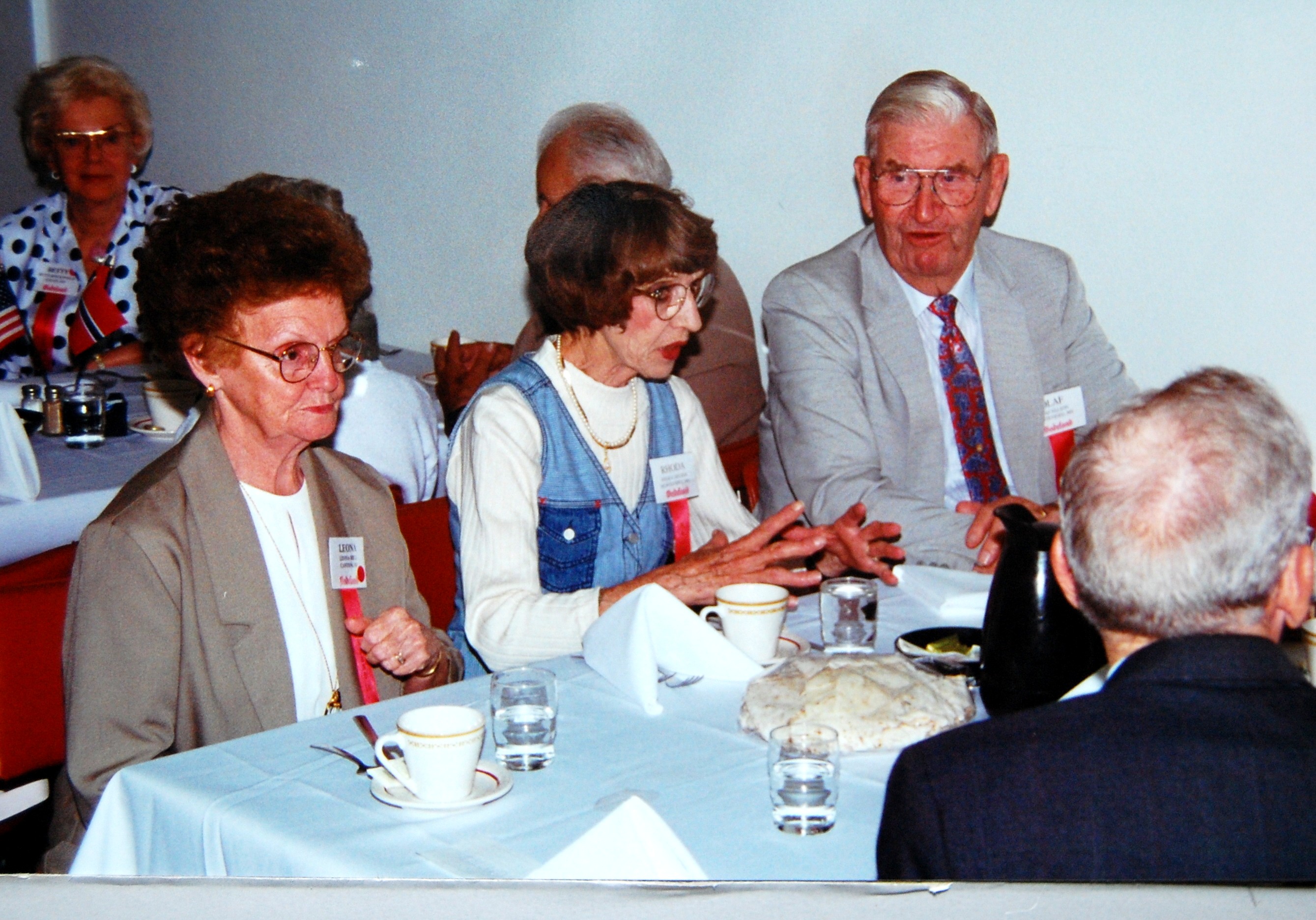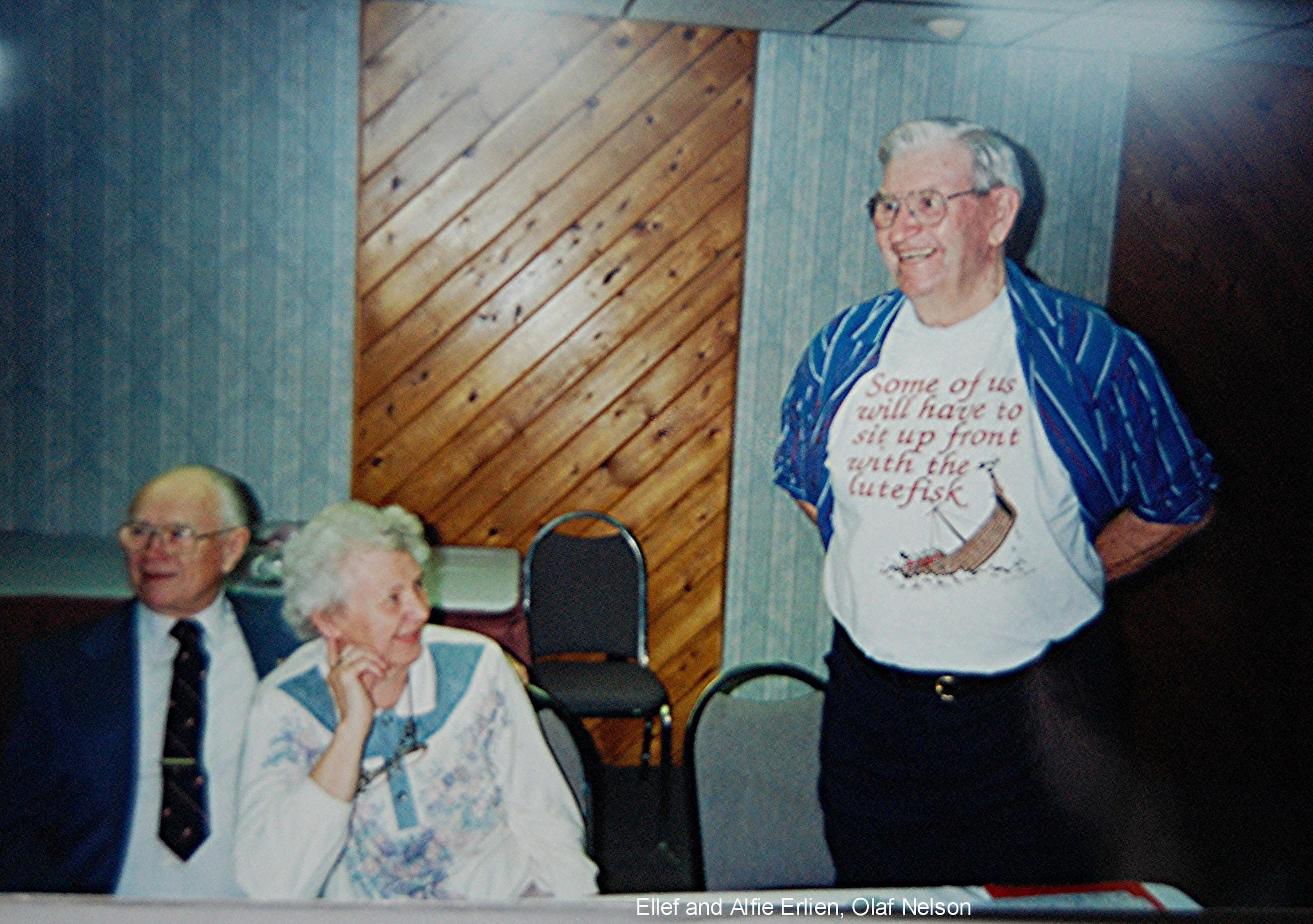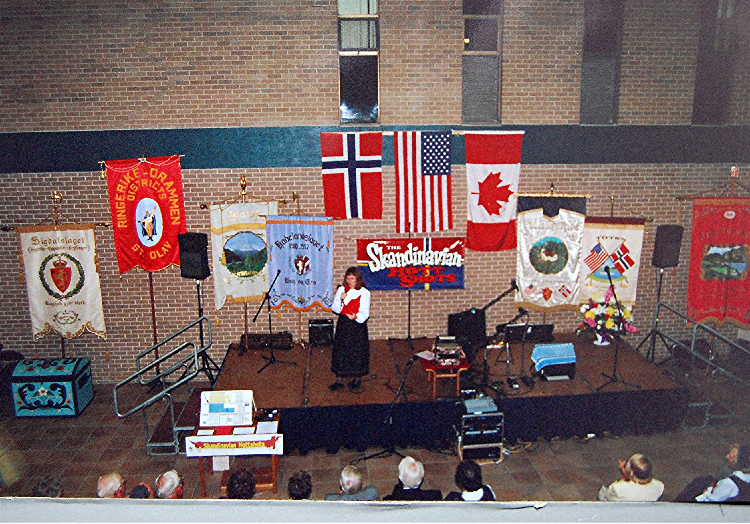 This year's stevne began Thursday, July 13 with members getting together in genealogy sessions. More Hadelanders arrived throughout Friday and enjoyed visiting with each other and seeing the special programs being shown in the morning and visiting the exhibits. The Seven-Lag Stevne opening program Friday afternoon was hosted by program chairman Chet Habberstad. Bob Gustafson opened the meeting with the Call of the "Lur" which was followed by a lag banner parade. Banners from all seven lags were carried in and the lag songs were sung or played. We were welcomed to Wahpeton by Chet, the president of Wahpeton State School of Science, and the presidents of the seven lags. Bill and Susan Goodman then entertained us with a musical variety show. Friday evening's program was hosted by Verlyn Anderson. We enjoyed a delightful time listening to music by The Wanderers, a four-piece orchestra whose members come from Hamar and Oslo, Norway. After the program we enjoyed dancing to the music of Marlin Westby from Pelican Rapids MN. After the meeting, the Hadeland and Land lags shared a buffet lunch at the Veteran's Club in Wahpeton. The Landings then invited the Hadelanders to a special 85th anniversary party at the Student Union of Wahpeton State School of Science. Norma Gilbertson gave a toast from Hadeland. Finn and Lilly Hanvoll from Oslo spoke on their remembrances of Liberation Day in Norway May 8, 1945. The Saturday evening banquet was held in the Flickertail Room of the Student Center. We then went to the Cultural Center to see the final act, of "Per," based on Palmer Rockswold's book. We have seen presentations of the first two acts at previous stevner. The production was directed by Charles Sorum with actors from Pelican Rapids and the area. Vocal and instrumental music was provided by Bill and Susan Goodman and the play was narrated by Verlyn Anderson. This was followed by a bunad parade and a presentation on the 1996 stevne by Elaine Bergen. From the August 1995 Brua |